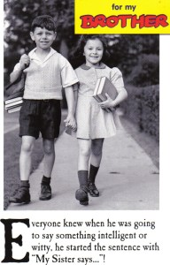 I have just received this birthday card from one of my younger sisters: