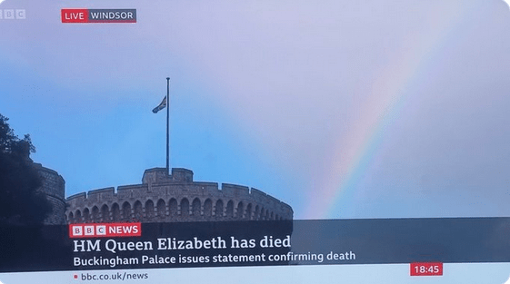 6:45 p.m. A rainbow appeared at Windsor Castle while the flag was lowered to mark The Queen’s death.