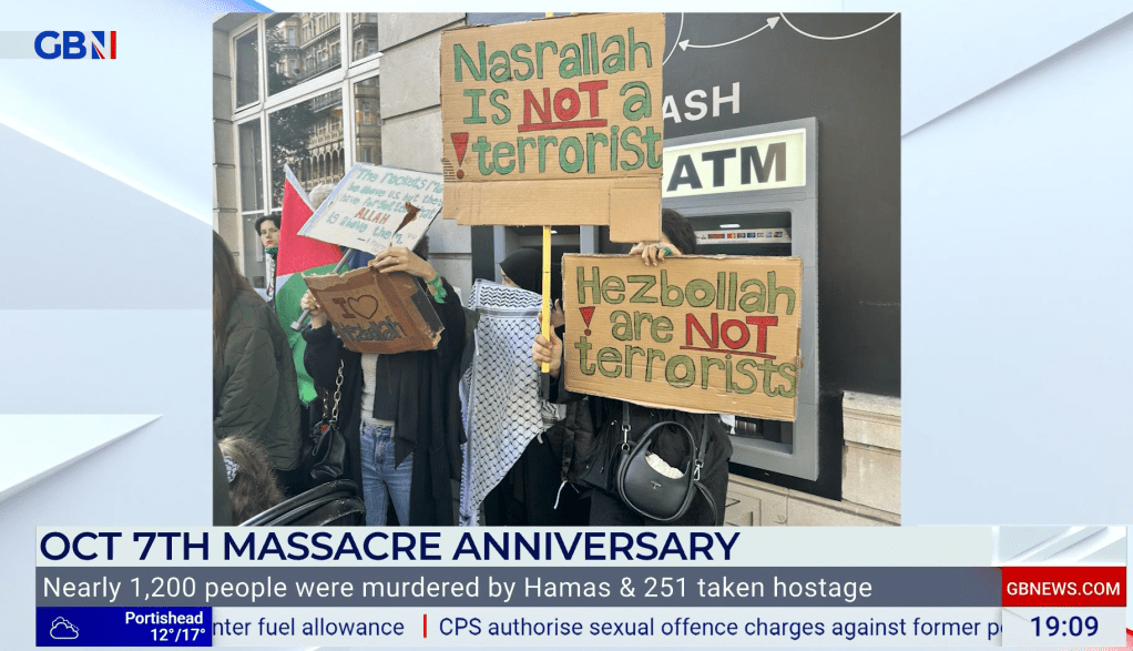 7 Oct 2024: the UK Israeli ambassador speaking on GB News at 19:09 hrs, showing those in the UK with sympathy for Hezbollah, a proscribed terrorist organization: