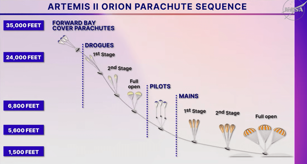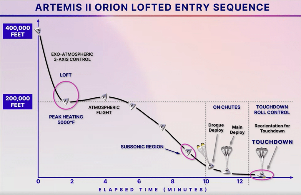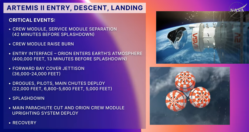 The crew photographed Earthset just before Integrity disappeared behind the Moon with LOS Loss of Signal. LOS lasted about 40 minutes during which time 1. Integrity’s closest approach to the Moon, at MET (Mission Elapsed Time) 5 days 0hrs 25mins 34seconds was 4,067 statute miles, and 2. its furthest distance from Earth at MET 5 days 0hrs 27mins 39seconds was 252,756 statute miles, which was 4,112 miles further than Apollo 13. As it comes out of LOS, it will photograph Earthrise, recalling Apollo 8’s iconic Earthrise photograph from much closer to the Moon, and it will begin its return to Earth under Earth’s gravitational pull.