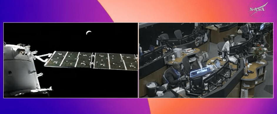 11:41 p.m. BST: the first live view of Integrity, the Moon and the Earth in one photograph